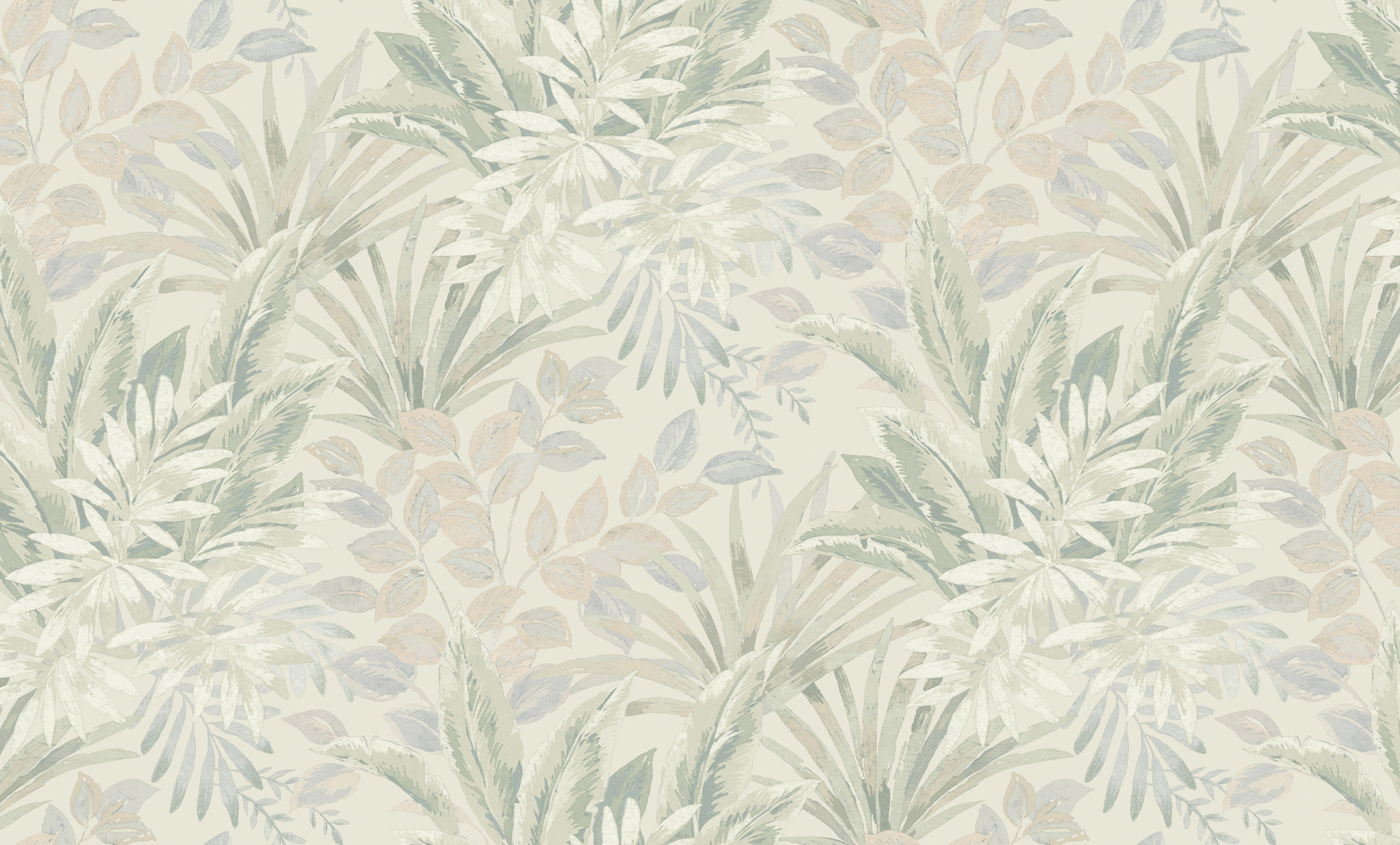 Листья выполнены в светлых оттенках серого, зеленого и бежевого.