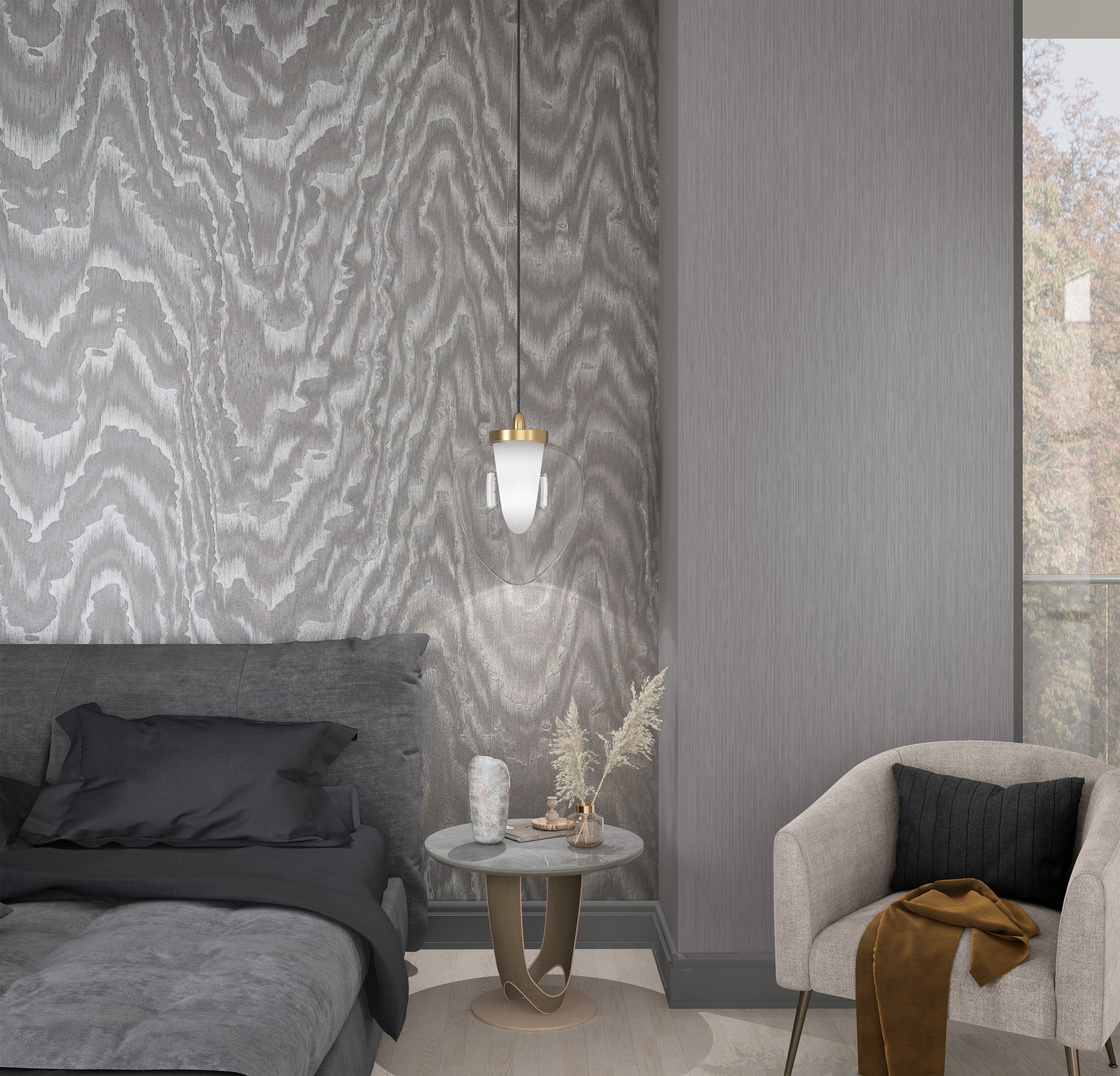 Обои с мелкой фактурой. Хаотичные волны придадут вашему интерьеру особый изыск.